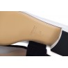 Ballerina in pelle bicolore con fiocco e profilo in canetè. Tacco 2 cm.